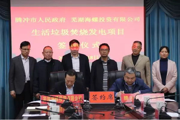 与腾冲市人民政府成功签署《腾冲市利用水泥窑综合处置生活垃圾发电项目特许经营协议》。