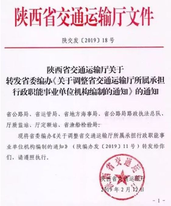 陕西省路政执法总队及11个支队整合组建为陕西省高速公路路政执法总队,下设11个派出机构(对外挂高速公路路政执法第一至第十一支队牌子),作为省级执法队伍暂予保留,纳入综合行政执法改革统筹推进。
