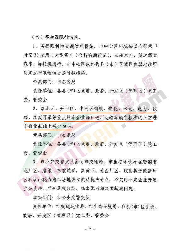 1、钢铁行业:遵化市、迁西县、丰润区、玉田县钢铁企业停50%以上的烧结机、竖炉装备;路北区、开平区、丰南区、古冶区、滦州市钢铁企业停20%以上的烧结机、竖炉装备。