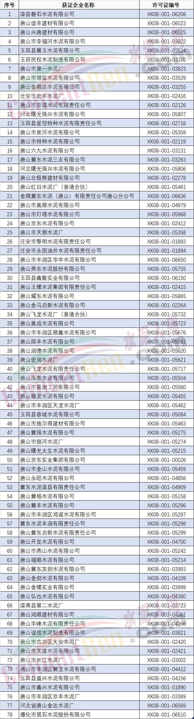 ⑵滦州市冀东水泥有限公司滦县分公司、滦南县耀东水泥公古冶区冀东启新水泥公司分别保留1条熟料生产线生产;
