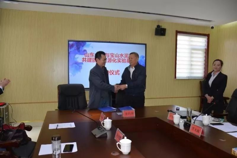 王文龙教授和赵军区长为山东大学与宝山水泥共建固废资源化实验基地揭牌