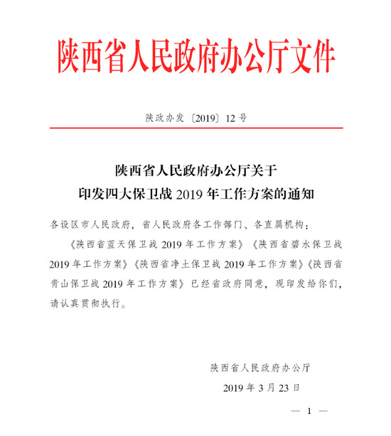 陕西省蓝天保卫战2019年工作方案
