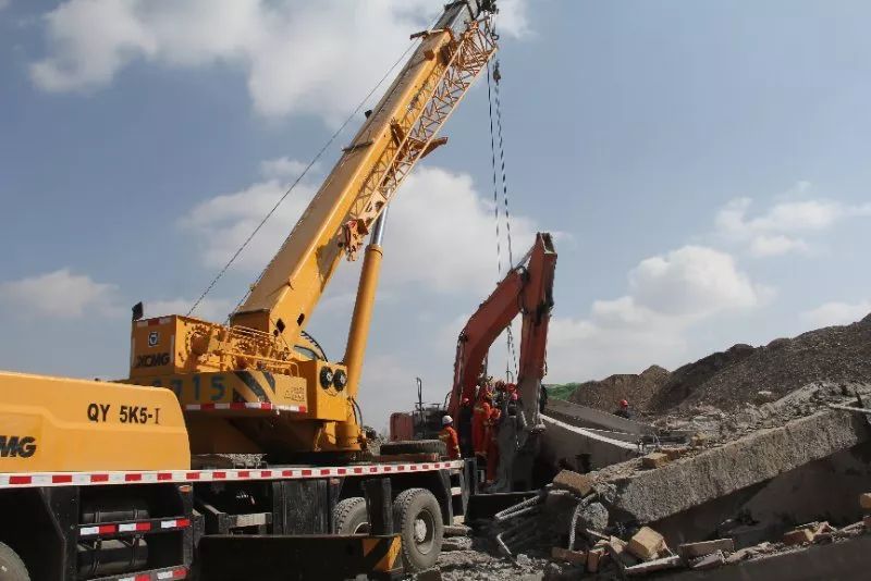 9时45分,消防救援人员到达事故现场,经现场询问得知:一台挖掘机在对房屋进行拆除时突然发生墙体倒塌,导致驾驶员被埋压,指挥员根据现场情况,立即协调吊车对倒塌墙体进行起吊。