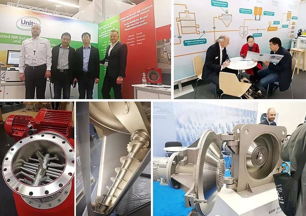 杨董事长带领研发中心骨干认真观摩了powtech展会上的各类展品,发现了很多前沿的创新技术,并与多家输送计量及相关配件厂家进行了深入的技术交流。同时也看到,德国工业设备无论从技术、外观制造工艺,还是在细微之处的处理上,真像是当成一件工艺品在做。