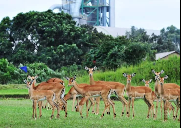 拉豪旗下Bamburi 水泥有限公司矿山,在肯尼亚蒙巴萨的南部,48年前还是荒芜的荒地,现在周围环绕着野生动物保护区,青翠的森林和草原,鸟类,动物,昆虫和植物的栖息地。