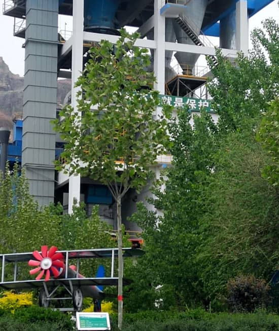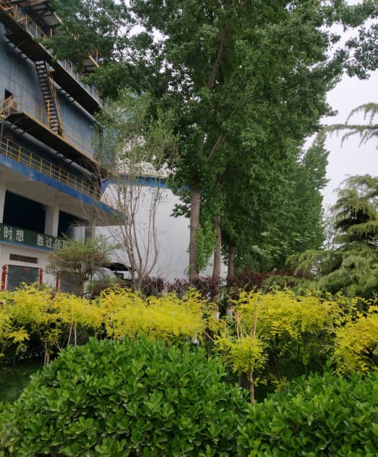 为实现花园式工厂的目标,曲寨水泥通过合理规划,将一个个荒岭秃坡、树木杂草难生的荒坡野岭设计成了一个平地以乔木灌木草坪为主,斜坡以花草为点缀,周围以高植物为屏的整体布局。累计栽植乔木、灌木、林木30余万棵,同时集中精力,加大绿化资金投入,大力着手开展绿化工作。在专业园林绿化公司的设计下,结合鹿泉当地水文气候特征,采用规划式布局和自然式种植紧密结合方式进行合理布局。达到了厂区绿化布局合理,乔、灌、花、草相得益彰,花果交替、空气流动感十足。职工们早晚上下班,如漫步在花园中,芳香四溢、沁人心脾。实现了春季繁花似锦、夏季绿树成荫、秋季花盛叶茂、冬季常青如春的效果。通过治理,大气环境和厂区面貌有了很大改变,基本上实现了地绿天蓝,清洁生产、花园式工厂的目标。