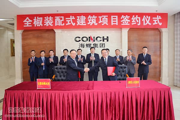 5月24日,海螺水泥与全椒县人民政府在海螺集团总部签署了装配式建筑项目合作协议。海螺集团党委书记、董事长高登榜,集团公司副总经理、海螺水泥副董事长王建超,海螺水泥总经理吴斌、副总经理柯秋璧,全椒县县委书记朱大纲、县长杨光、副县长阚绪瑞等出席并见证签约仪式。吴斌、杨光代表双方签署协议。