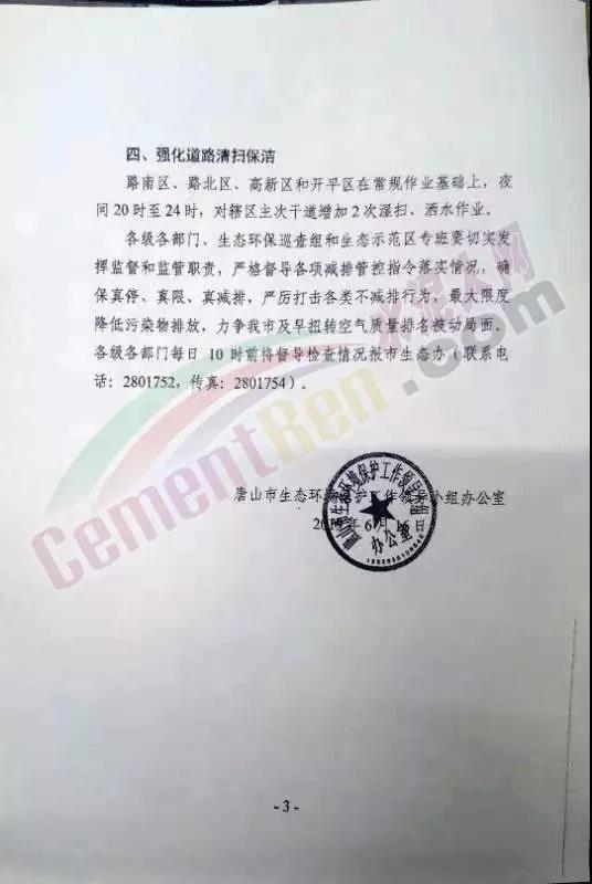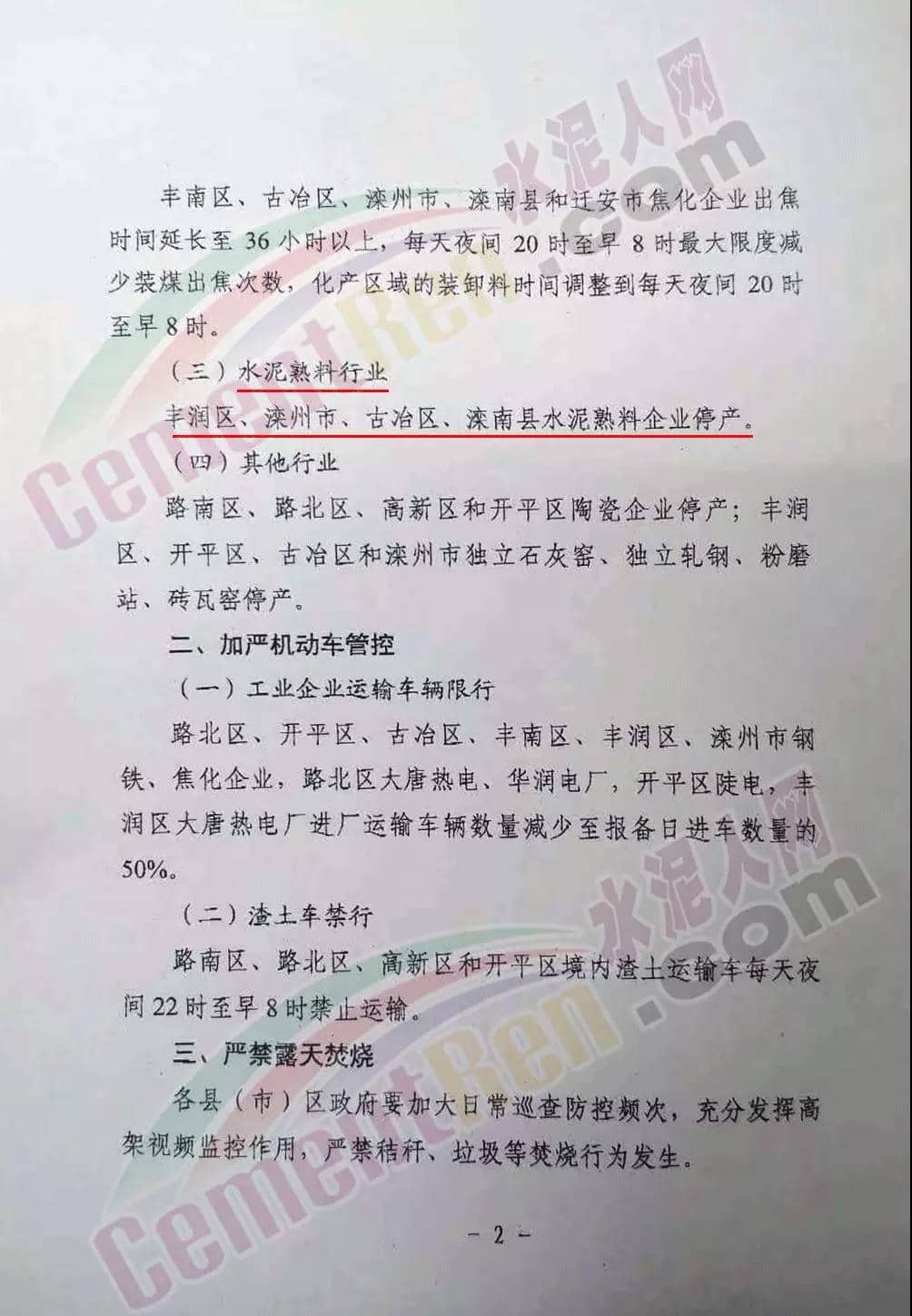 要求水泥熟料行业丰润区、滦州市、古冶区、滦南县水泥熟料企业停产。路南区、路北区、高新区和开平区陶瓷企业停产;丰润区、开平区、古冶区和滦州市独立石灰窑、独立轧钢、粉磨站、砖瓦窑停产。
