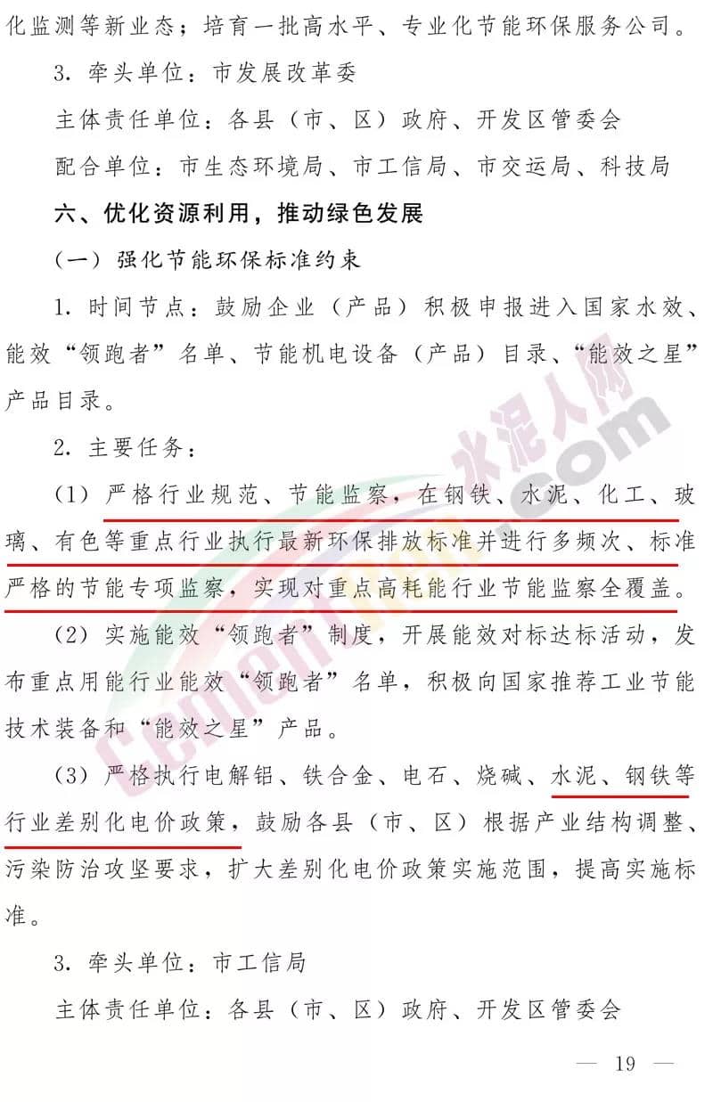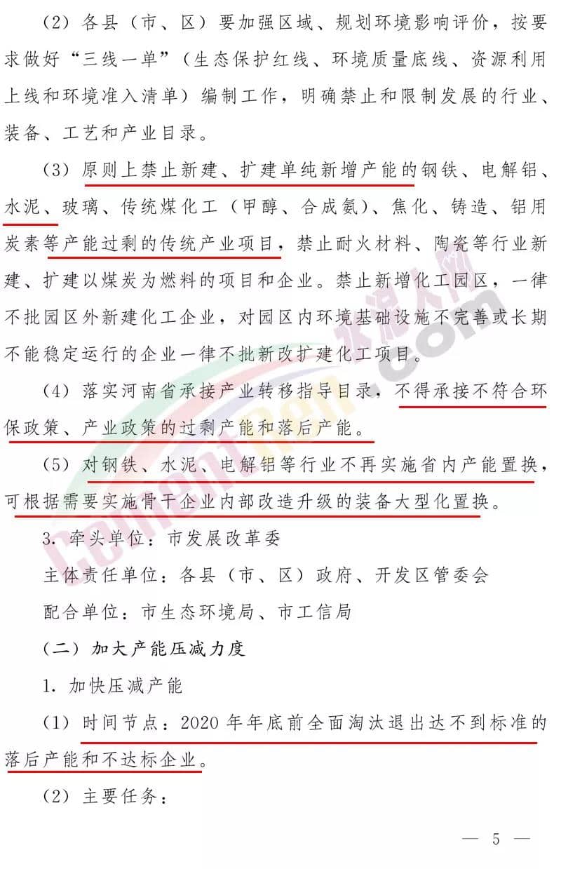 针对于水泥行业,方案提到原则上禁止新建、扩建单纯新增产能的钢铁、电解铝、水泥等产能过剩的传统产业项目,禁止耐火材料、陶瓷等行业新建、扩建以煤炭为燃料的项目和企业;落实河南省承接产业转移指导目录,不得承接不符合环保政策、产业政策的过剩产能和落后产能;对钢铁、水泥、电解铝等行业不再实施省内产能置换,可根据需要实施骨干企业内部改造升级的装备大型化置换。
