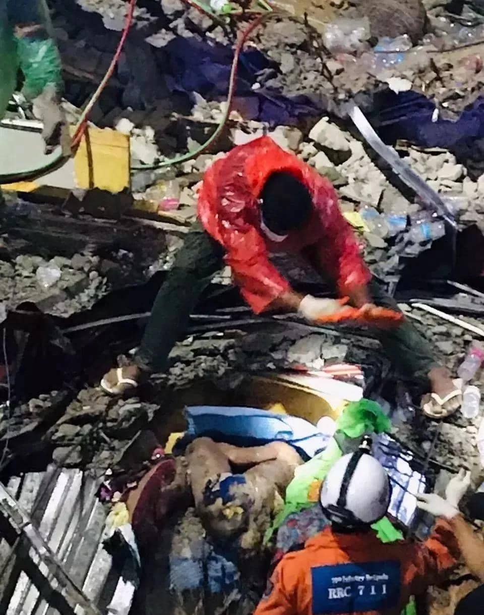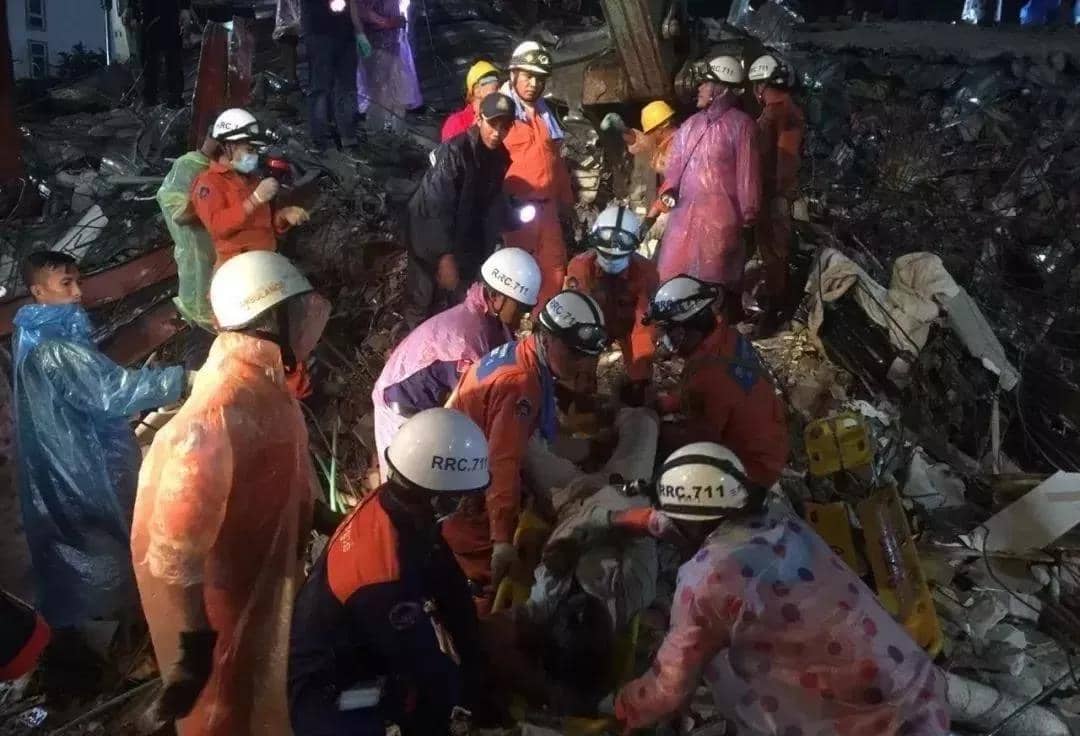 ▲西哈努克市垮塌建筑救援现场