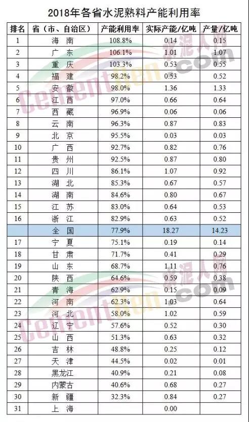 六年来,随着化解过剩产能工作的不断推进,全国水泥熟料行业产能利用率已经从2012年底的73.7%提高到2018年底的77.9%,水泥行业产能过剩问题得到初步缓解。值得关注的是,目前国内水泥产能利用率呈现明显的南高北低态势。一方面,北方多数省份的产能利用率依然没能达到全国平均水平,新疆、黑龙江、内蒙古等省份甚至低于50%;另一方面,南方大部分省份的产能利用率都保持在90%以上,区域性、结构性矛盾仍十分突出。