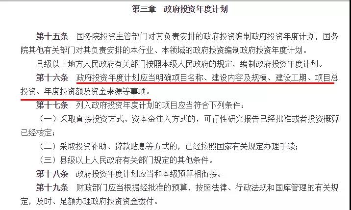 该《条例》是我国政府投资领域第一部行政法规,其中明确要求: