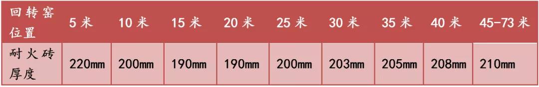 2014年01月份换砖后,到2015年06月15日因淄博地区协同停窑,进行检修时窑内烧成带及上过渡带换砖,这次烧成带耐火砖使用17个月,低导热DDR30砖因完好无损没有更换。2015年06月15日换砖至2016年7月1日(耐火砖已经使用了380天),检修时对窑内耐火砖测量结果如下: