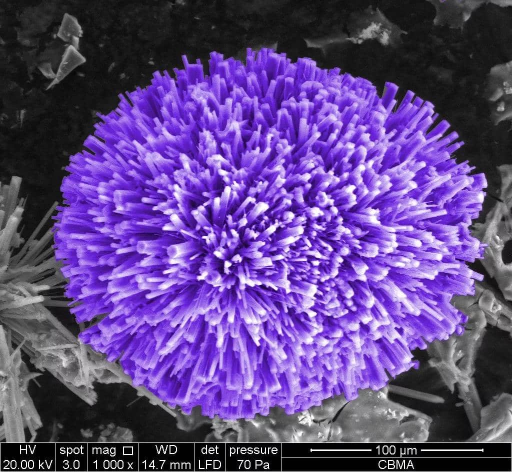 水泥混凝土中部分水化产物的定向生长,犹如一朵朵在岩石上盛开的美丽小花。