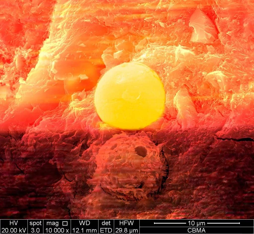 掺入粉煤灰的水泥浆体,仿佛东方冉冉升起的太阳。为减少石灰石等自然资源消耗,水泥熟料中使用一定量的粉煤灰等工业矿渣进行替代。