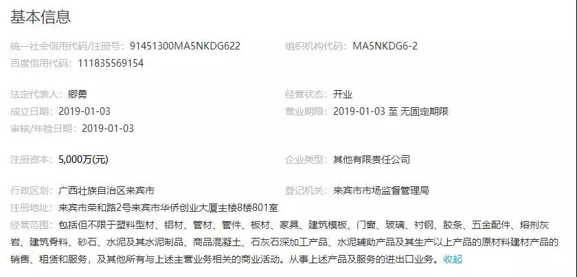 该公司主要从事塑料型材、铝材、管材、管件、 板材、家具、建筑模板、门窗、玻璃、衬钢、胶条、五金配件、熔剂灰岩、建筑骨料、砂石、水泥及其水泥制品、商品混凝土、石灰石深加工产品、水泥辅助产品及其生产以上产品的原材料建材产品的销售、租赁和服务等业务。
