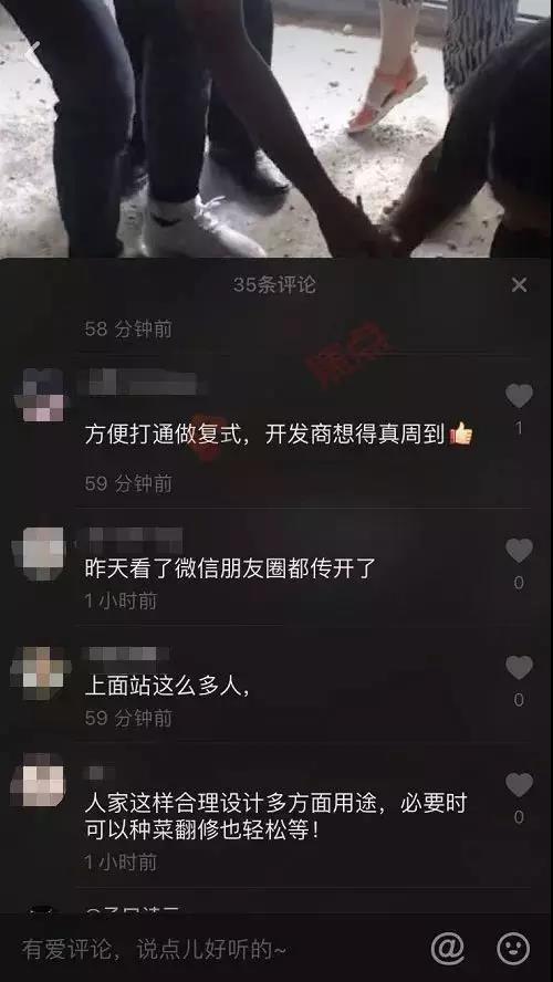 不少网友的评论也是亮了,调侃到“这也是开发商想得周到,方便上下打通做复式。”。