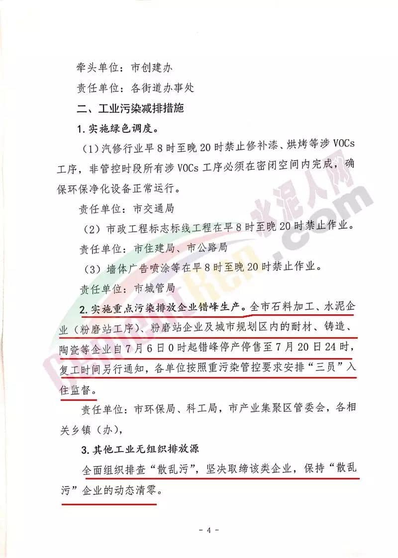通知明确要求,禹州市全市石料加工、水泥企业(粉磨站工序)、粉磨站企业及城市规划区内的耐材、铸造、陶瓷等企业自7月6日0时起错峰停产停售至7月20日24时,复工时间另行通知,各单位按照重污染管控要求安排“三员”入住监督。