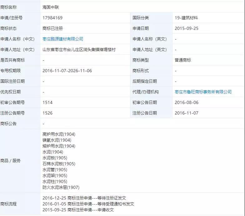 据水泥人网小编查询,这家注册商标为“海固中联”品牌的“中联水泥”与并非中国建材下属中联水泥企业所产,而是枣庄一家民营粉磨站企业所生产。又一个称为“中联”而不是“中联”的水泥品牌。(相关链接:市场惊现 “低价海螺”水泥!真相竟然是……)