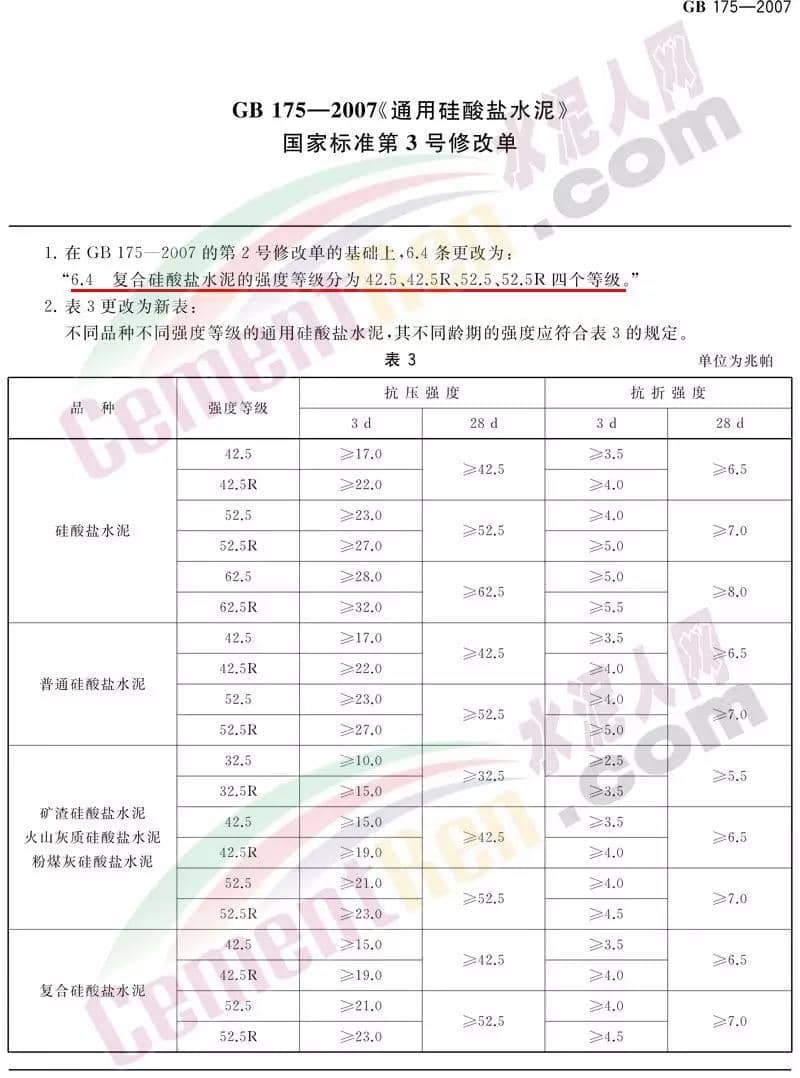 GB175-2007《通用硅酸盐水泥》3号修改单