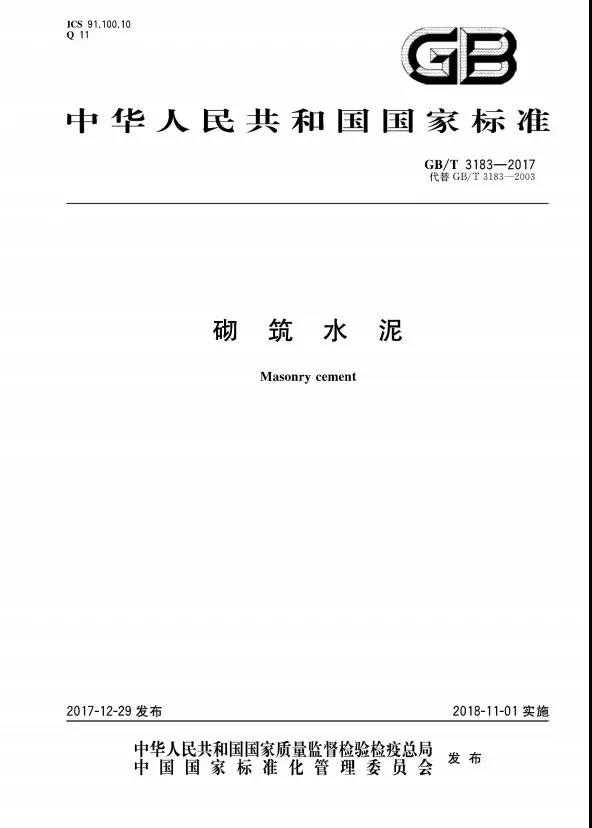 GB/T3183-2017《砌筑水泥》国家标准实施日期为2018年11月1日,从其内容来看,更象是全面取消GB175标准中的32.5标号“打补丁”。