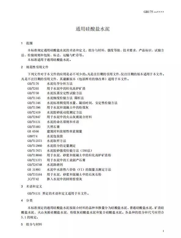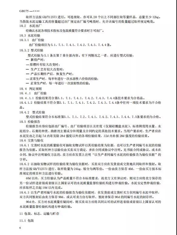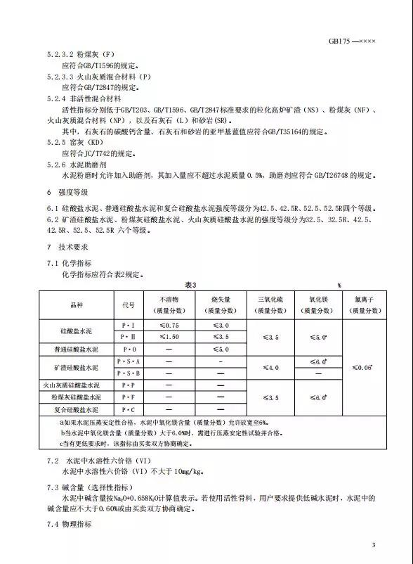今年5月,国家标委会发出GB175通用硅酸盐水泥标准修改意见稿,其中针对相关内容做了相应调整。征求意见稿原文如下: