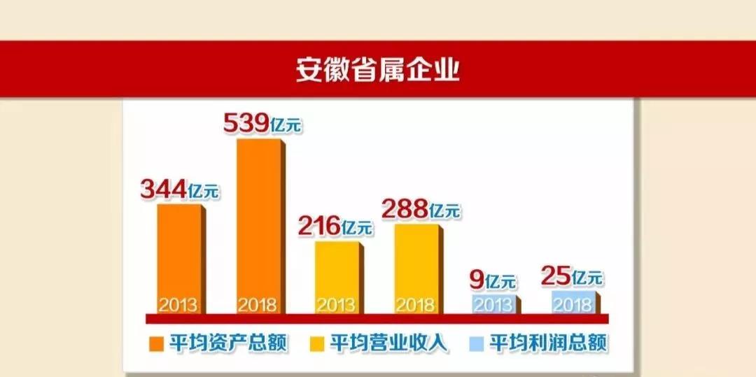 通过持续推动改革在重点领域和关键环节取得新进展,安徽国资国企正在加快向高质量发展迈进中,不断提升综合竞争力,尤其是省属企业发展潜能不断被激发,平均资产总额、营业收入、利润总额分别从2013年的344亿元、216亿元、9亿元提高到2018年的539亿元、288亿元和25亿元,专利拥有量目前达到了22000多件,比2016年增长56.9%,呈现出了稳中有进、稳中向好的良好发展态势。