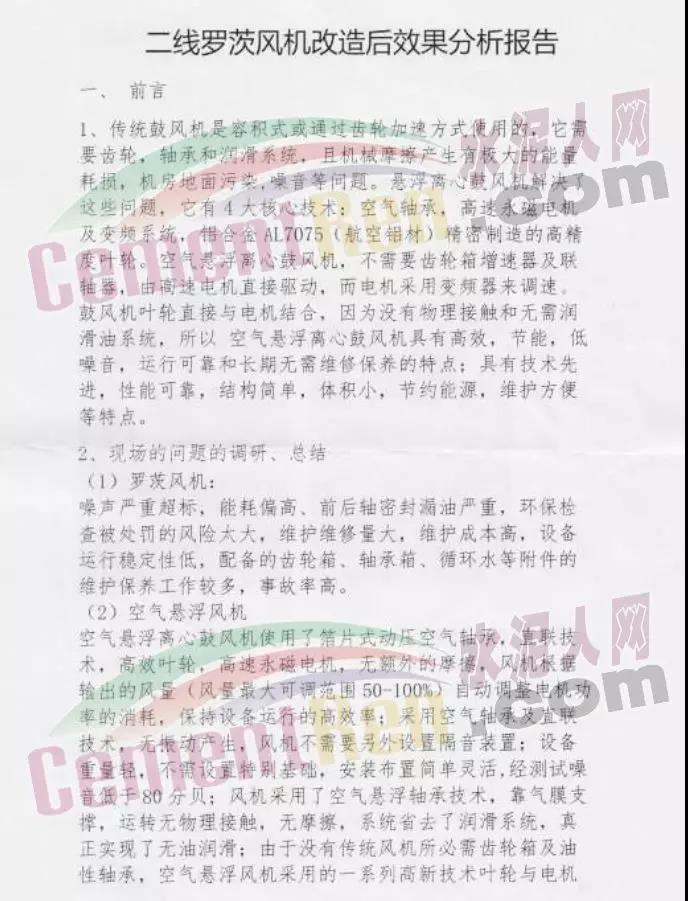 1、头煤空气悬浮风机:根据实际参数对比后累计正常运行41天的用电量,对比后空气悬浮风机节电率为49.6%;达到合同签订要求。