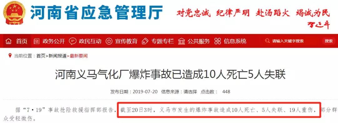 记者从三门峡市委宣传部了解到,20日3时,义马市发生的爆炸事故造成10人死亡、5人失联、19人重伤,部分群众受轻微伤。