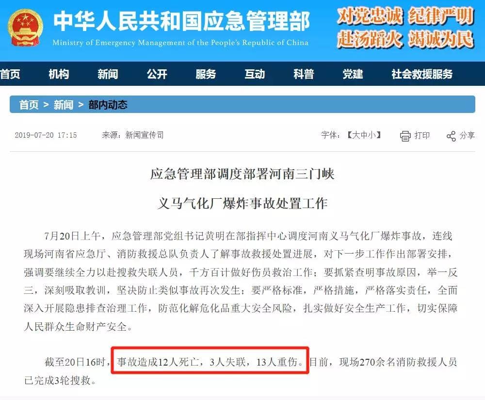 截至20日16时,事故造成12人死亡,3人失联,13人重伤。目前,现场270余名消防救援人员已完成3轮搜救。