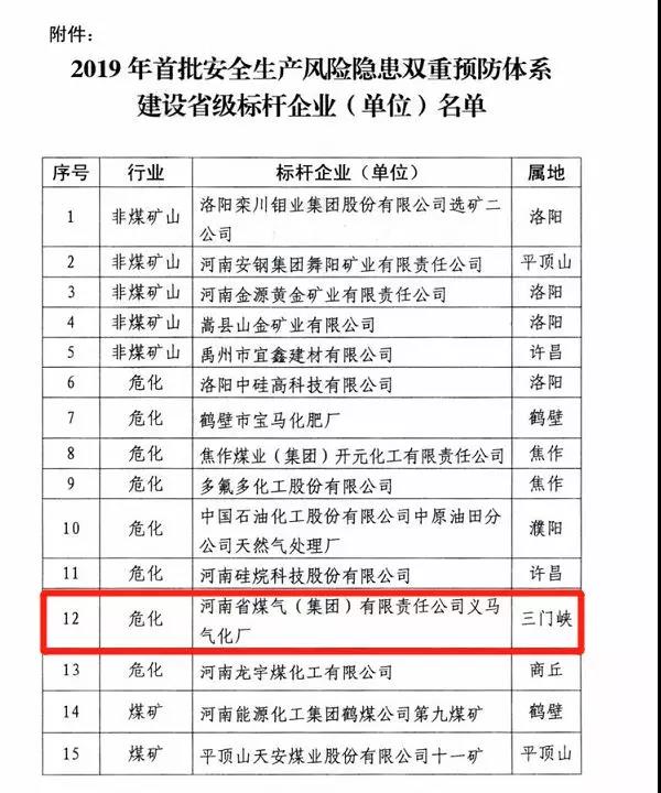 让人意想不到的是,这次爆炸的企业在十天前,刚刚获得安全标杆企业---河南省煤气集团三门峡义马气化厂还被列为河南省“2019年首批安全生产风险隐患双重预防体系建设省级标杆企业”。