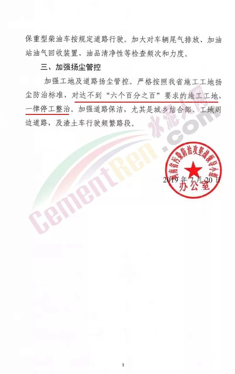 针对于施工工地,加强扬尘管控,对达不到“六个百分之百”要求的施工工地,一律停工整治。通知原文如下: