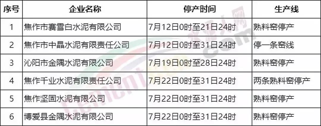 此前焦作市环境保护部门发布《重点排污企业“一企一策”管控方案》要求区域内水泥企业停产截止到本月末止;方案提到为持续改善空气质量,顺利完成全市7月份空气质量改善目标,按照科学研判、绿色管控的原则,对焦作市大气重点排放企业采取“一企一策”的管控要求。
