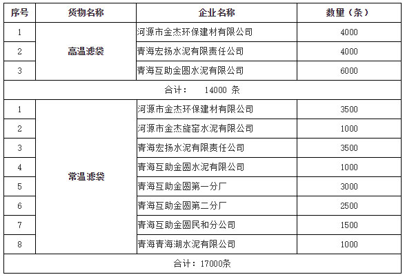 金圆环保是金圆控股集团下属以建材环保为双主业,集水泥、商砼、环保为一体的大型上市公司,金圆环保水泥板块拥有青海互助金圆水泥有限公司、青海宏扬水泥有限责任公司、河源市金杰环保建材有限公司、杭州连威贸易有限公司等控股分子公司。现拟对水泥板块各分子公司高温、普通滤袋进行统一公开招投标,通过公开邀请具有生产供货能力的单位进行投标。现将相关招标信息发布如下: