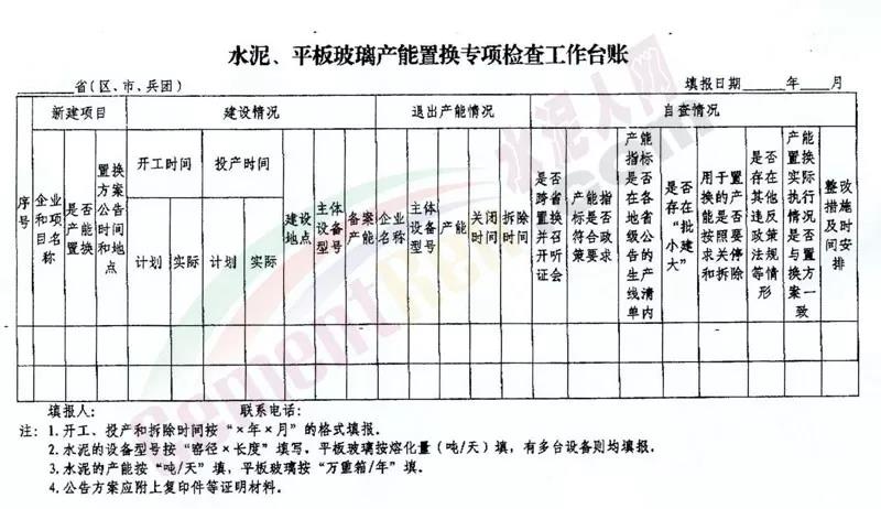 据水泥人网了解,水泥、平板玻璃产能置换专项检查工作涉及的项目包括新建项目和退出产能情况以及企业自查情况反馈。新建项目,包括企业和项目名称、是否产能置换、置换方案公告时间和地点。以及项目建设开工时间(计划/实际)、投产时间(计划/时间)、项目建设地点、主体设备型号、备案产能。退出产能情况包括企业名称、主体设备型号、产能、关闭时间、拆除时间。 企业自查情况包括:是否跨省置换并召开听证会、产能指标是否符合政策要求、产能指标是否在各地省级公告的生产线清单内、是否存在“批小建大”、用于置换的产能是否按照要求关停和拆除、是否存在其他违反政策法规等情形、产能置换实际执行情况是否与置换方案一致、整改措施及时间安排等。