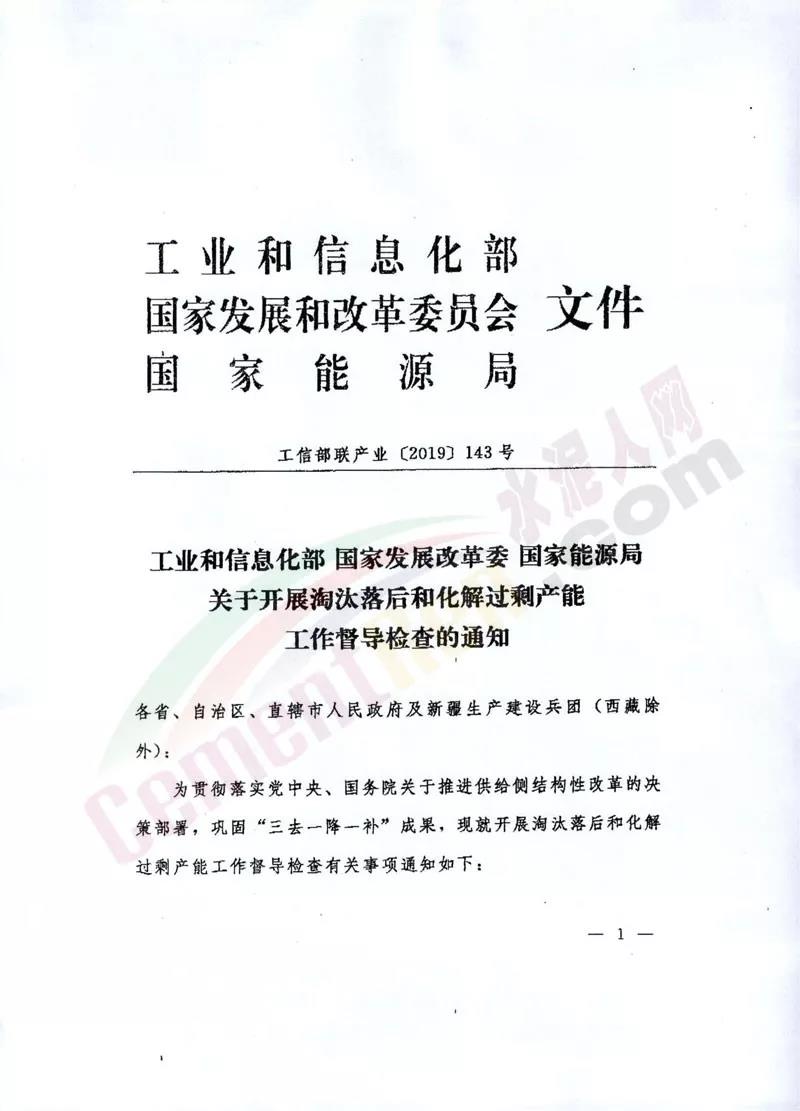日前,工业和信息化部、国家发展和改革委员会及国家能源局发布《关于开展淘汰落后和化解过剩产能工作督导检查的通知》(工信部联产业【2019】143号)。文件称,为贯彻落实党中央、国务院关于推进供给侧结构性改革的决策部署,巩固“三去一降一补”成果,现就开展淘汰落后和化解过剩产能工作督导检查有关事项问题作出通知。