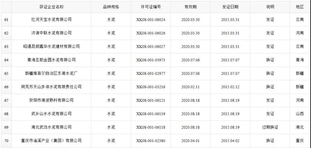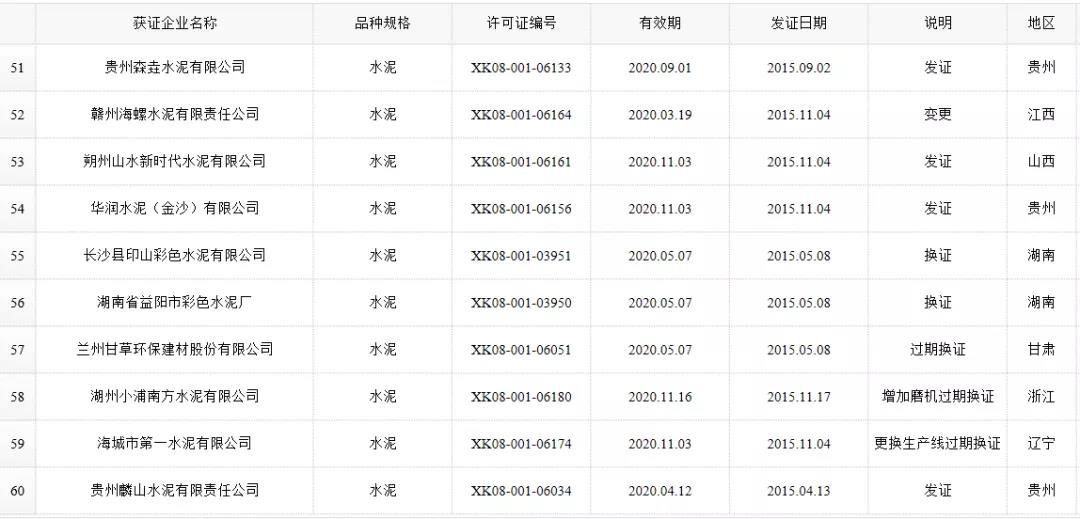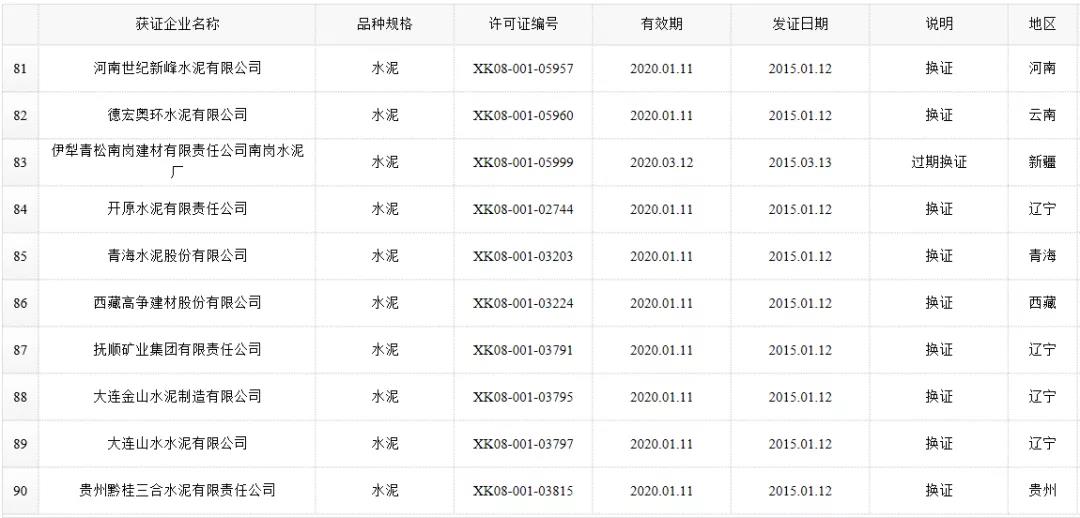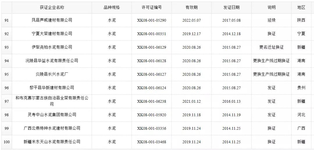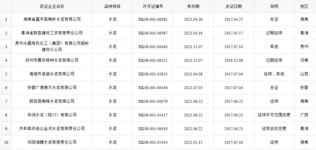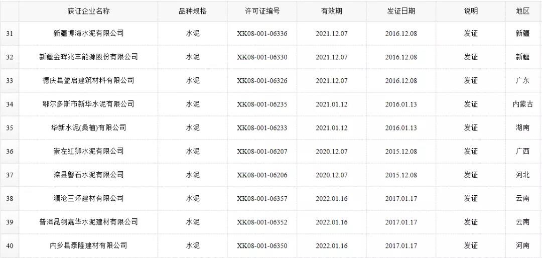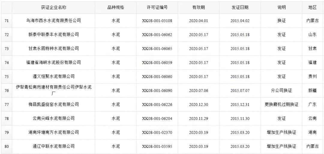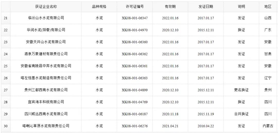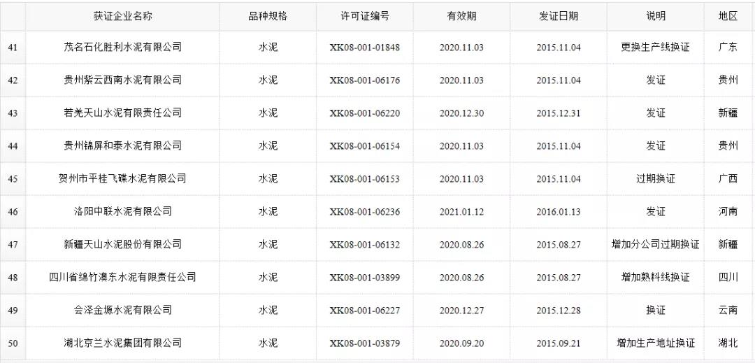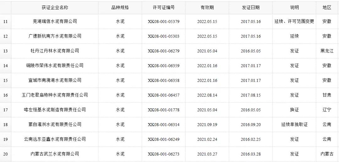 数据来源:市场监管总局生产许可证办公室,因篇幅有限仅列出部分熟料生产线名单。