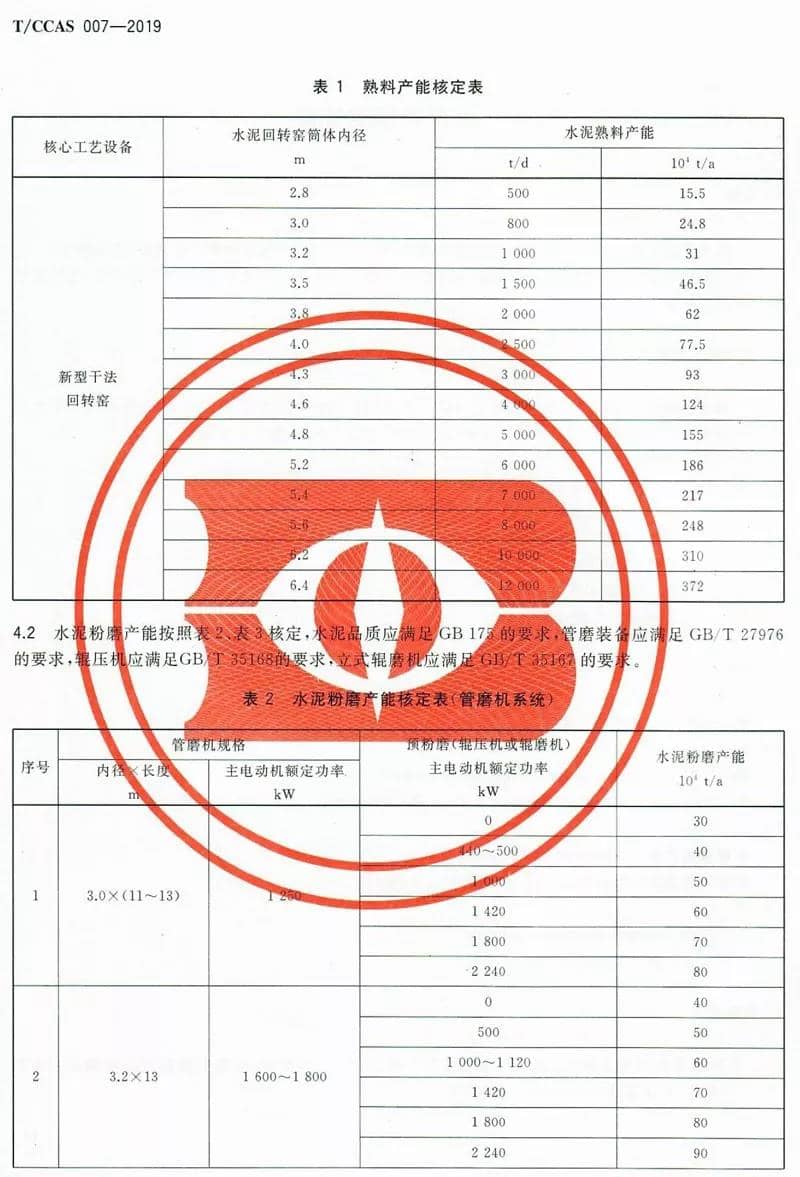 附水泥协会水泥产能核实标准(T/CCAS007-2019) 部分截图