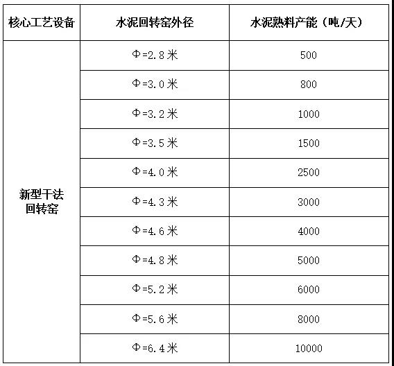 备注:1、对于变径窑,按其最粗窑径核定产能。2、窑径在上表中两档之间的,按插值法推算其产能。
