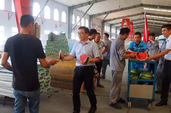 公司也为高温下坚守岗位的一线员工送去藿香正气丸、冰镇饮料、西瓜等解暑防暑用品。
