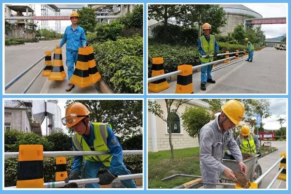 为进一步完善公司现场安全基础设施,公司安环处正牵头组织人员安装机动车道和人行道隔离墩,他们的衣服虽然早已被汗水浸湿,但仍一丝不苟地各自完成手中的工作,没有任何懈怠情绪。