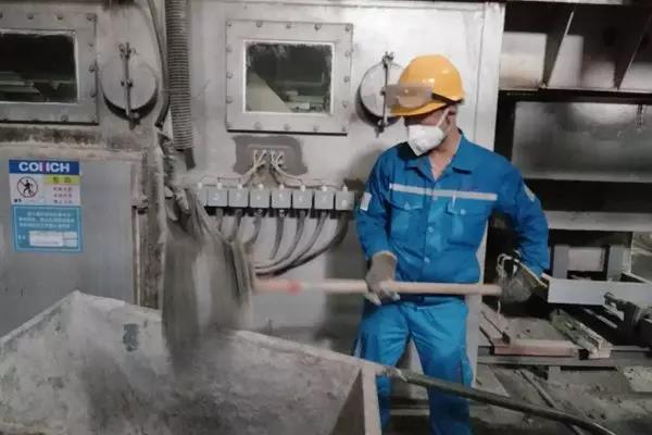 为确保现场干净整洁,制造分厂员工们正挥动着手中的铲子,清理地面多余的积料。