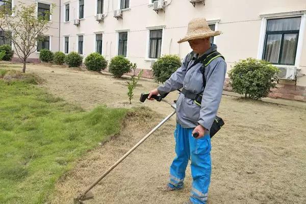 办公室后勤维修人员正和往常一样,对生活区草坪进行修剪,不断提升厂区绿化视觉美感。