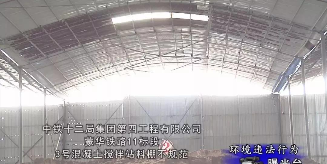 ▲中铁十二局集团第四工程有限公司蒙华铁路11标段3号混凝土搅拌站料棚不规范