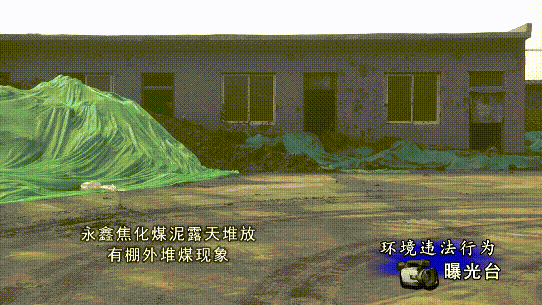 ▲永鑫焦化煤泥露天堆放、有棚外堆煤现象