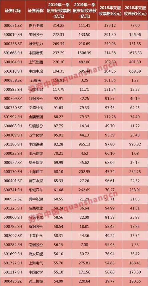 蓝筹公司应收票据普遍较高据wind数据显示,在所有A股公司当中,蓝筹公司的应收票据规模普遍较高。其中,格力电器、宝钢、潍柴动力、中国建筑、上汽集团、中国中冶、五粮液、海螺水泥一季报的应收票据规模都突破了100亿。