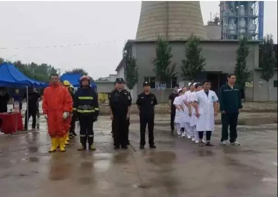 演练以涞水金隅冀东熟料制备车间氨水泄漏导致3人被困为背景,事故发生后立即启动县级应急预案,各相关部门赶赴事故现场,全力营救被困人员。