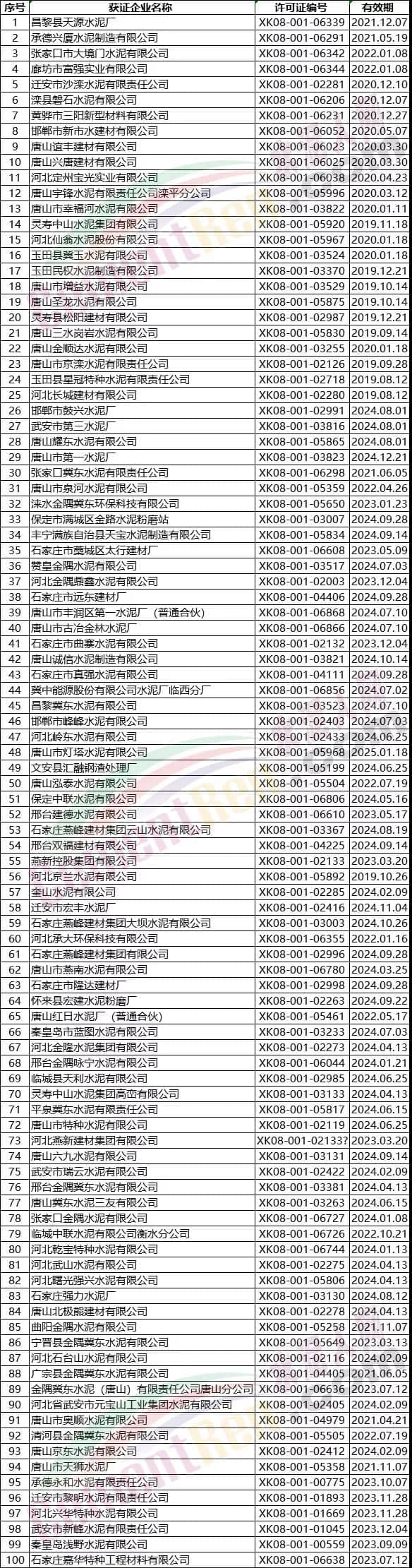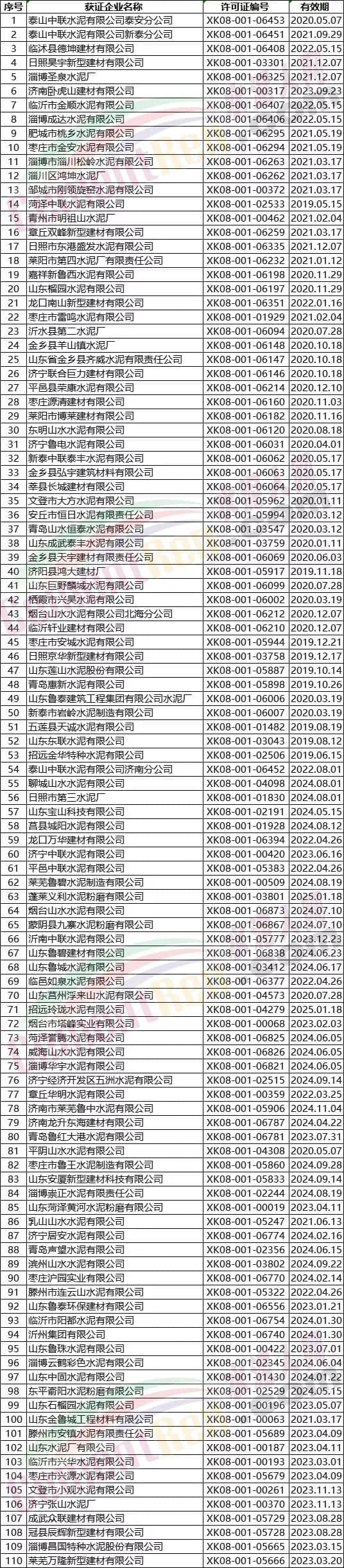 附:台湾、福建、浙江、上海、江苏、山东、河北、天津、辽宁水泥企业名单