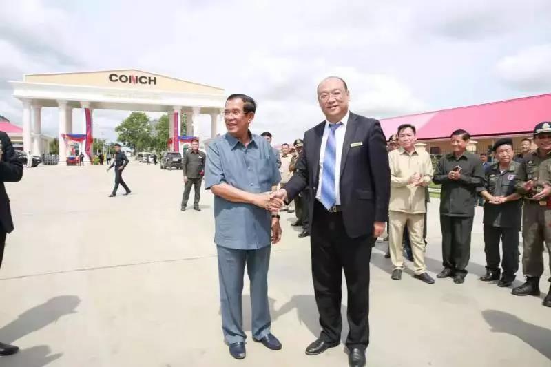 2018年5月31日,柬埔寨王国首相洪森出席马德望海螺投产剪彩仪式,现场与丁锋亲切握手。