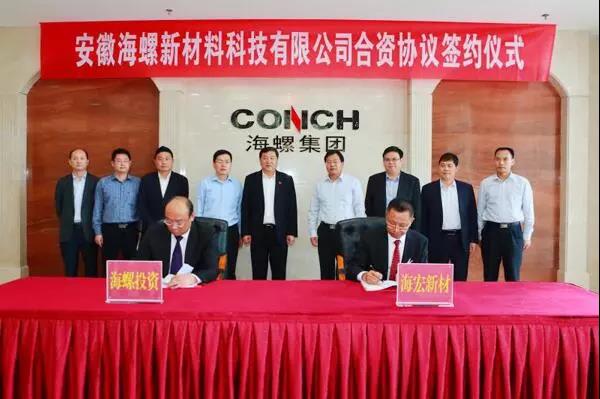 2018年5月11日,海螺新材料科技有限公司投资协议签署,丁锋(左一)代表公司在协议上签字。